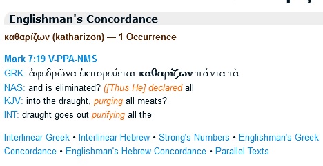 ). Jesus was saying that it was the eating with unwashed hands, a Jewish tradition, not a rule of God, that did not defile the person. He was not talking about eating of meat specifically forbidden by God. In fact, the parenthetical statement in Mark 7:19, ("In saying this, Jesus declared all foods clean."), is not in the original Greek text. This was added later by someone with a personal opinion, but everyone now uses that as a Biblical approval to disobey God.