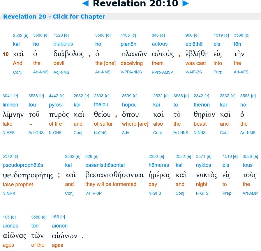 10 And the devil, who deceived them, was thrown into the lake of burning sulfur, where the beast and the false prophet had been thrown. They will be tormented day and night for ever and ever. (NIV)