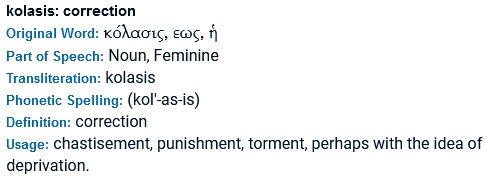 again refers to the punishment of eternal fire. There's that word punishment again. Some equate this to what we call punishment here on earth in this life. Death or destruction in this life is one thing, but we never call the punishment down here "eternal". You can't be punished if you are gone.