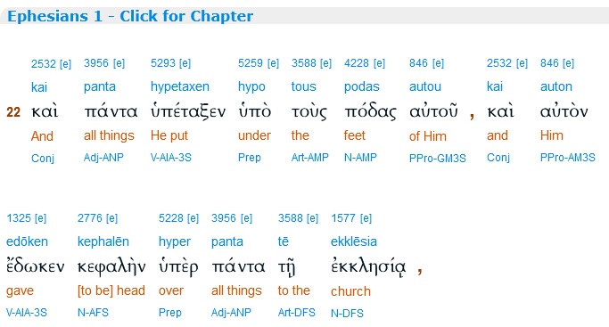 Look at the last word in the last line, then look above it for the word the Paul actually used. The word ekklesia does not mean church, but "called out ones".