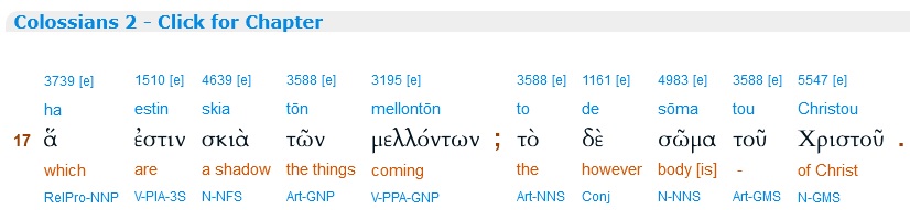 NOTE: I have used the ESV here because it interprets the Greek correctly instead of adding the past tense shown in the NIV, "These are a shadow of the things that were to come" (emphasis added), which changes the meaning of the verse. Paul was speaking of things of the future, not something that was already done.